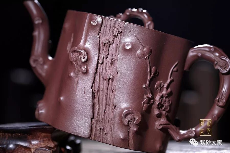 梅樁壺是仿生型紫砂茶壺,是紫砂壺“花器”傳統(tǒng)款式中的經(jīng)典代表作,因形似梅樁而得名。