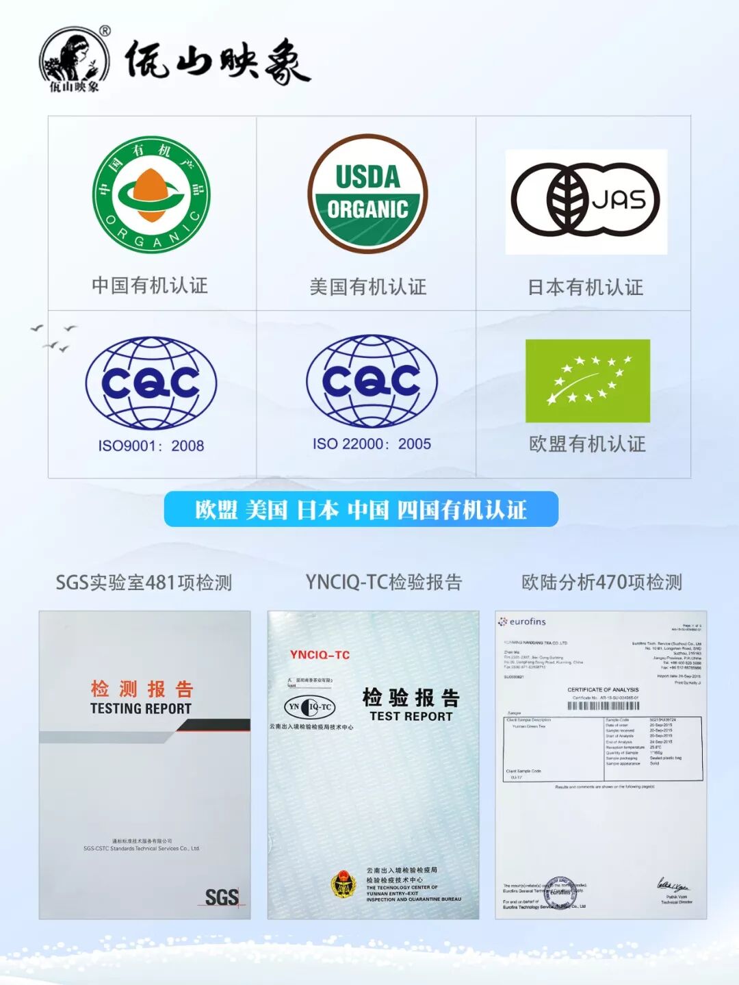 數(shù)據(jù)是我們最好的表達(dá)方式。因為,我們的品質(zhì)有最根本的保證。從源頭到成品,都有歐盟、美國、日本、中國四個地區(qū)的有機(jī)認(rèn)證,是市面上不多見的兩款安心好喝的有機(jī)普洱茶。