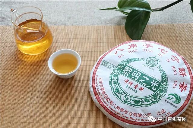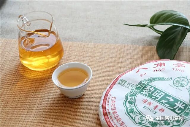 八角亭2018年黎明之光餅形周正,凈潔勻齊,色澤烏潤;條索緊結(jié)、顯毫;湯色金黃透亮;滋味厚重,口感飽滿,生津快,回甘持久;茶氣剛烈。